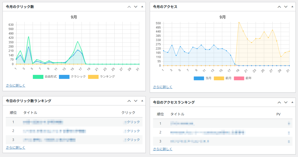 AFFINGERは改善に役立つアクセス解析やクリックに関する詳細なデータを管理画面でわかりやすく確認することができます。