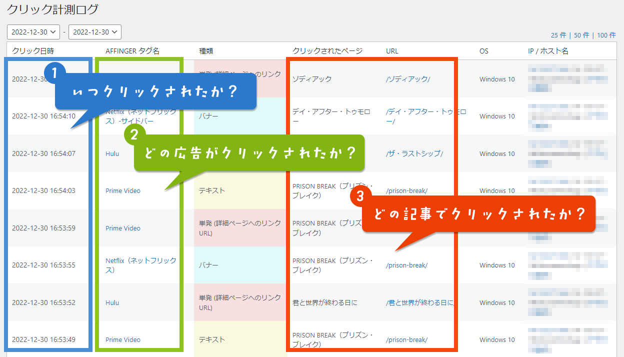 - 「いつ」「どの記事で」「何回」クリックしたか?
