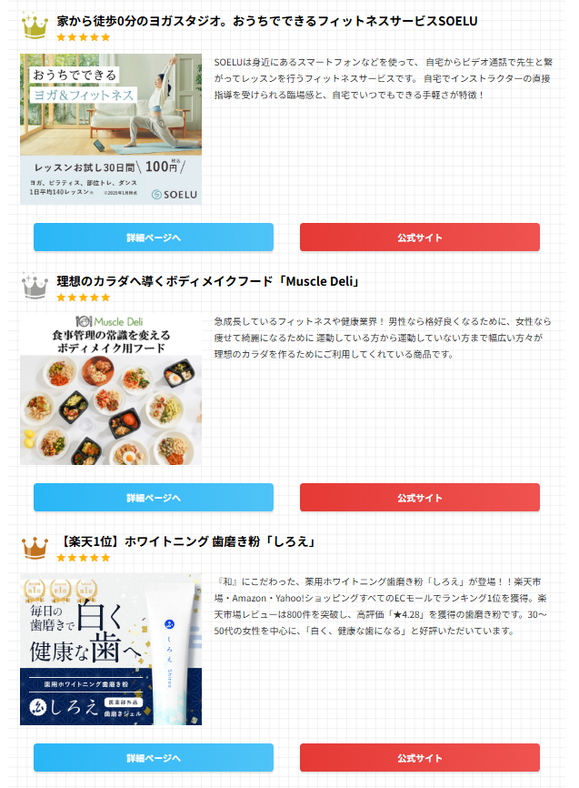 ランキング機能では自分だけのおすすめランキングを表示するデザインを管理画面で作成することが可能です。