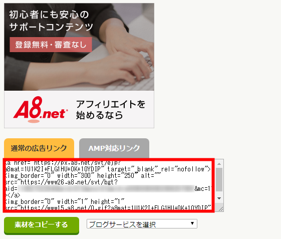 商品を選ぶと広告ごとに以下のようなあなた専用の広告コードが用意されます。