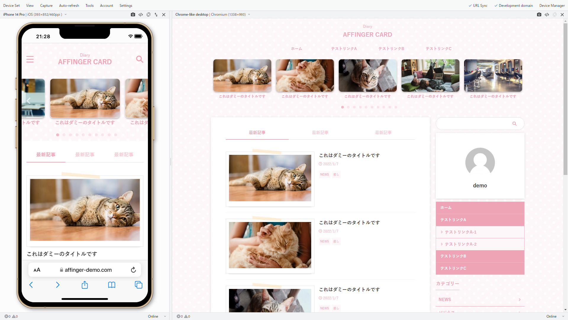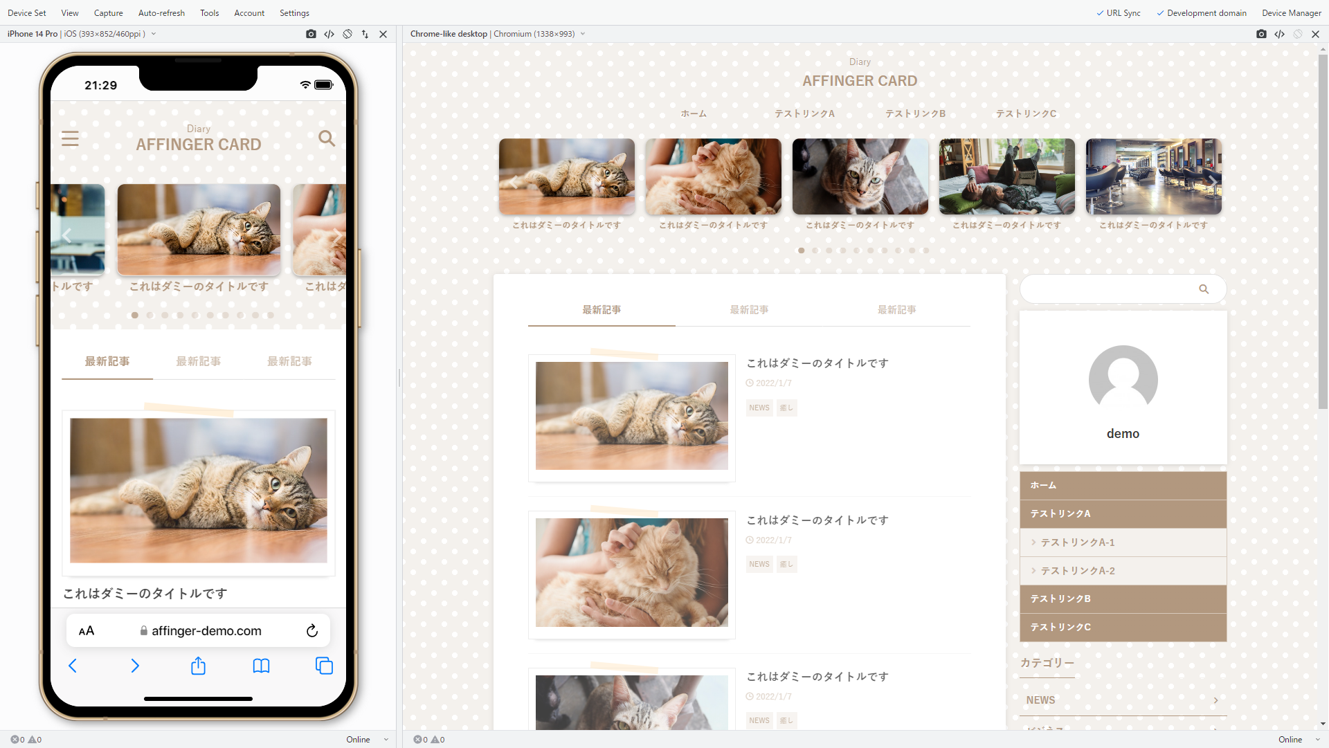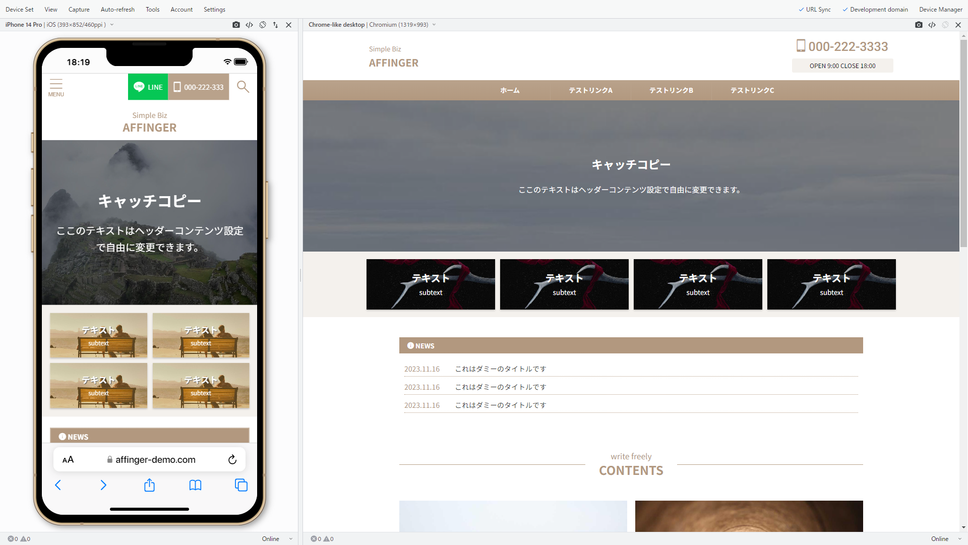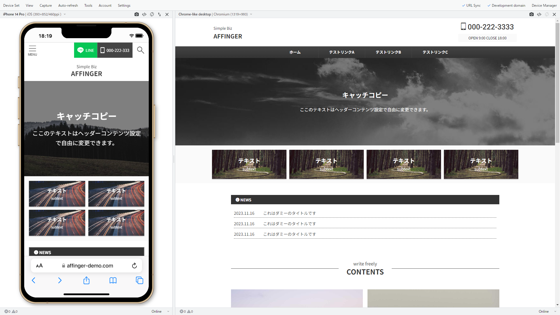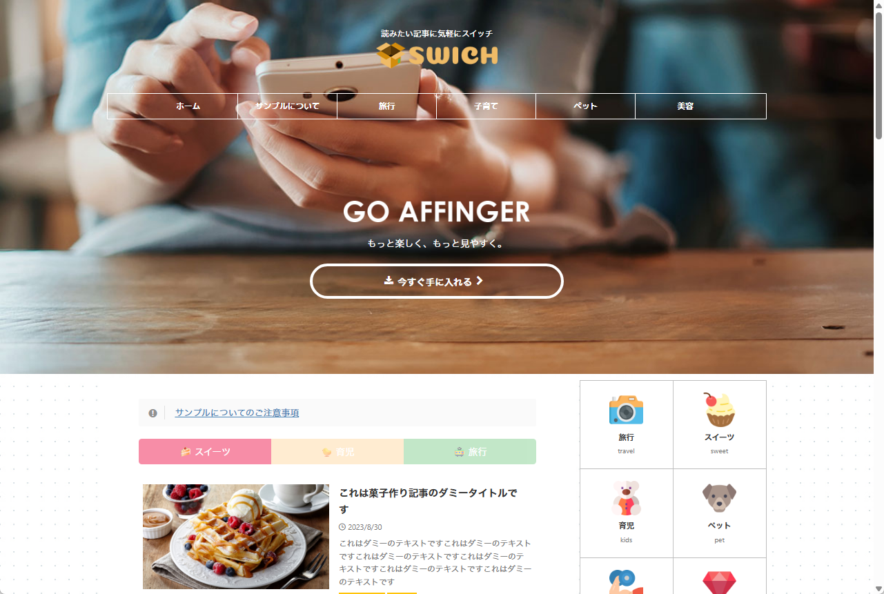 複数のテンプレートを購入する必要はなく、AFFINGERなら1つでオシャレなブログや可愛いお店のサイト、信頼感のあるビジネスサイトまでターゲットに合わせたデザインを作ることができます。