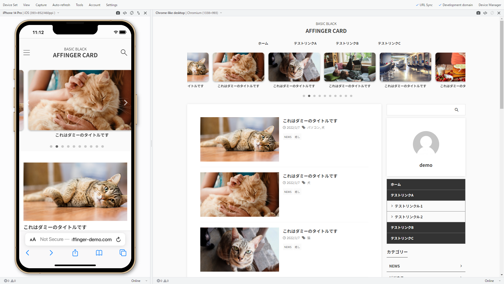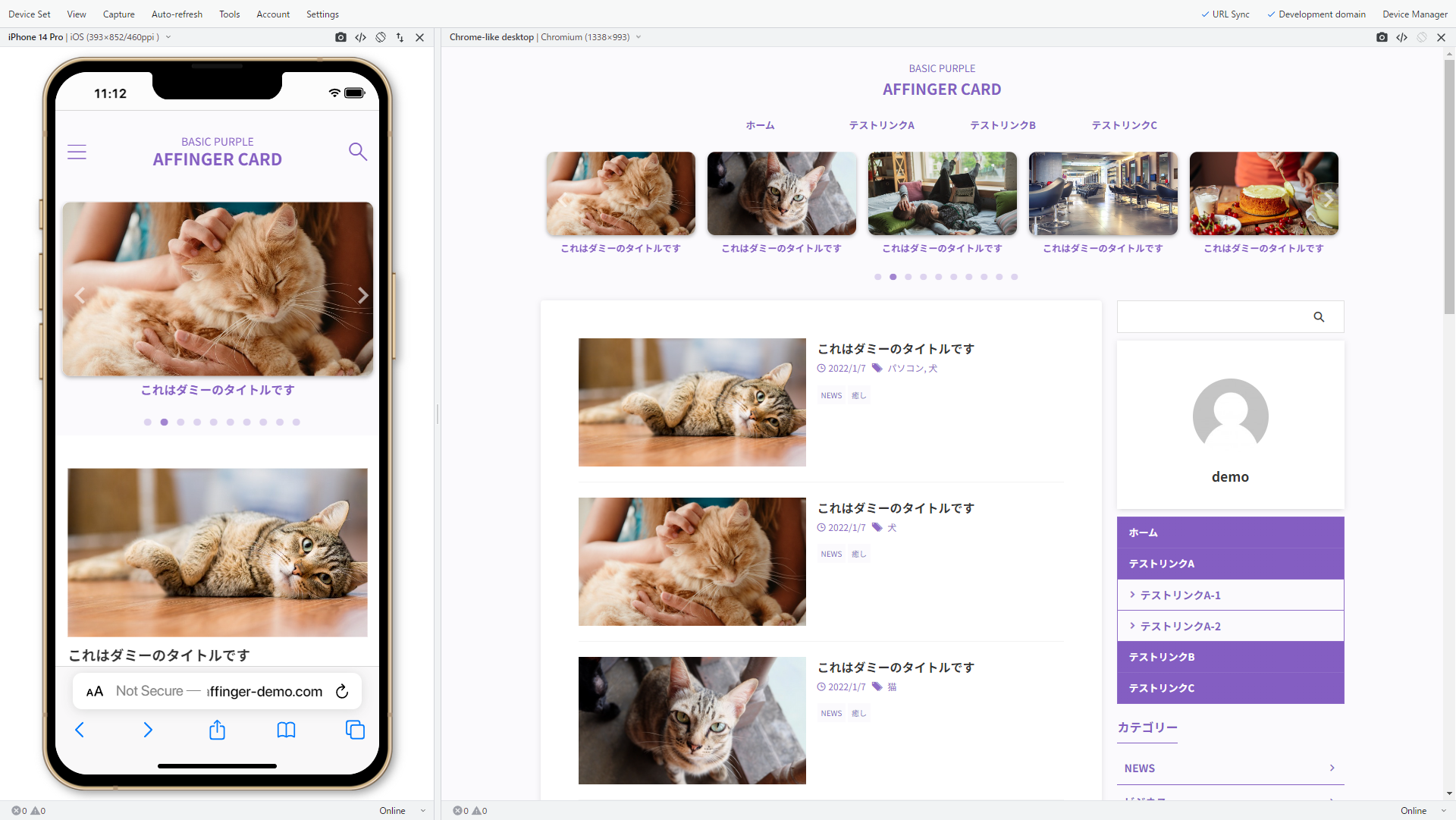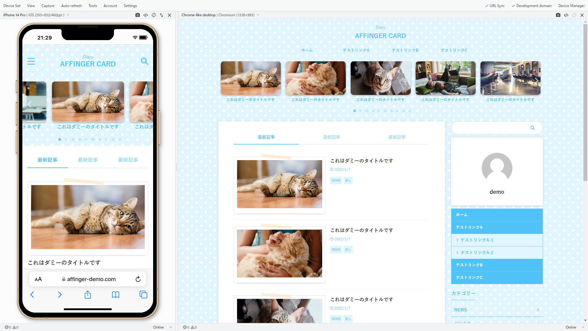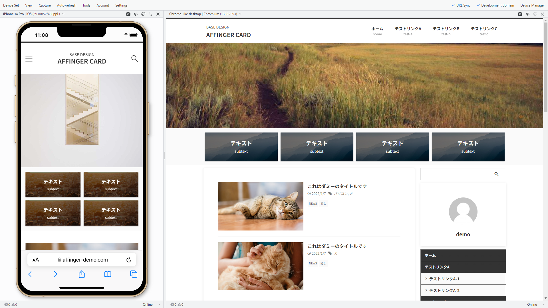 複数のテンプレートを購入する必要はなく、AFFINGERなら1つでオシャレなブログや可愛いお店のサイト、信頼感のあるビジネスサイトまでターゲットに合わせたデザインを作ることができます。